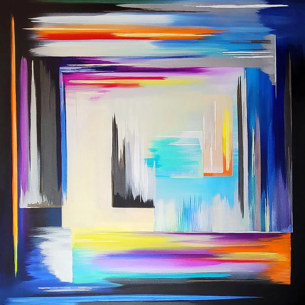 Mixed media acrylics on canvas contemporary abstract artist painter from Ecuador.